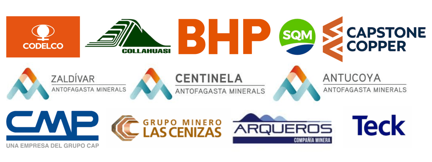 Antucoya, Minera Escondida, Minera Zaldívar, Minera Centinela, Lomas Bayas, Alto Norte, Codelco, SQM, Minera Arqueros, Minera Cenizas, Quebrada Blanca, Collahuasi, CMP, Mantos Blancos, Manto Verde, Mantos Copper, entre otras.